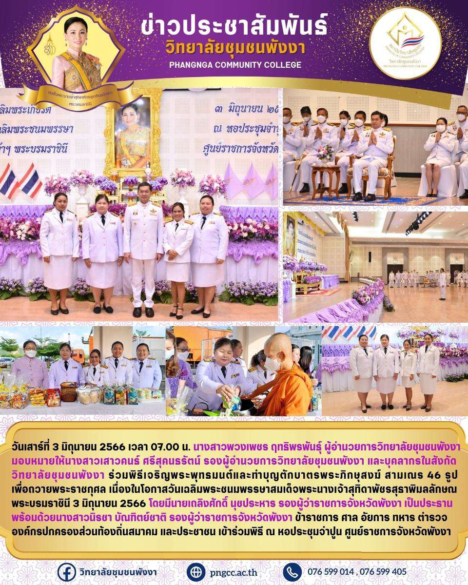 พิธีเจริญพระพุทธมนต์และทำบุญตักบาตรพระภิกษุสงฆ์ สามเณร 46 รูป เพื่อถวายพระราชกุศล 3 มิถุนายน 2566