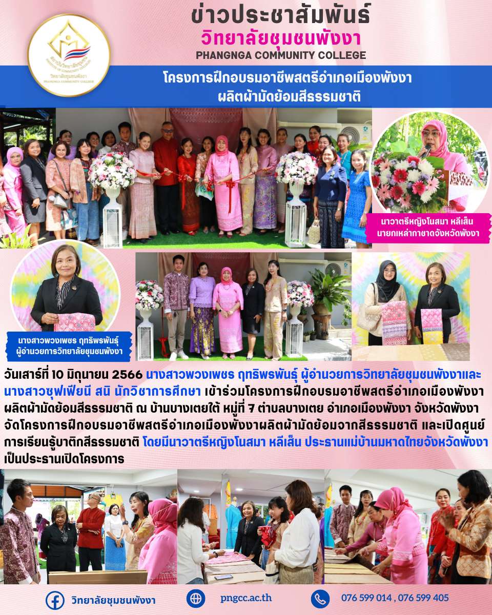 โครงการฝึกอบรมอาชีพสตรีอำเภอเมืองพังงา ผลิตผ้ามัดย้อมสีธรรมชาติ