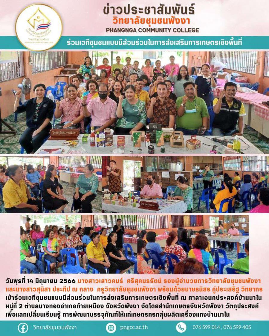 ร่วมเวทีชุมชนแบบมีส่วนร่วมในการส่งเสริมการเกษตรเชิงพื้นที่