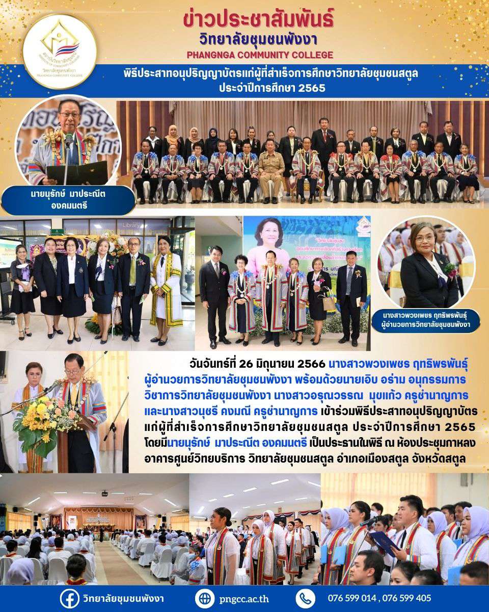 พิธีประสาทอนุปริญญาบัตรแก่ผู้ที่สำเร็จการศึกษาวิทยาลัยชุมชนสตูล ประจำปีการศึกษา 2565