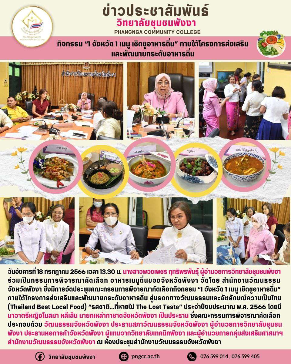 กิจกรรม 1 จังหวัด 1 เมนู เชิดชูอาหารถิ่น ภายใต้โครงการส่งเสริม และพัฒนายกระดับอาหารถิ่น