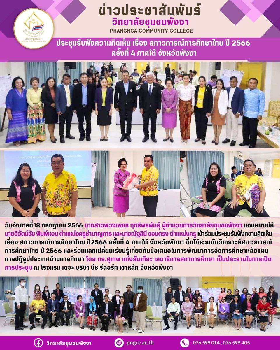 ประชุมรับฟังความคิดเห็น เรื่อง สภาวการณ์การศึกษาไทย ปี 2566 ครั้งที่ 4 ภาคใต้ จังหวัดพังงา