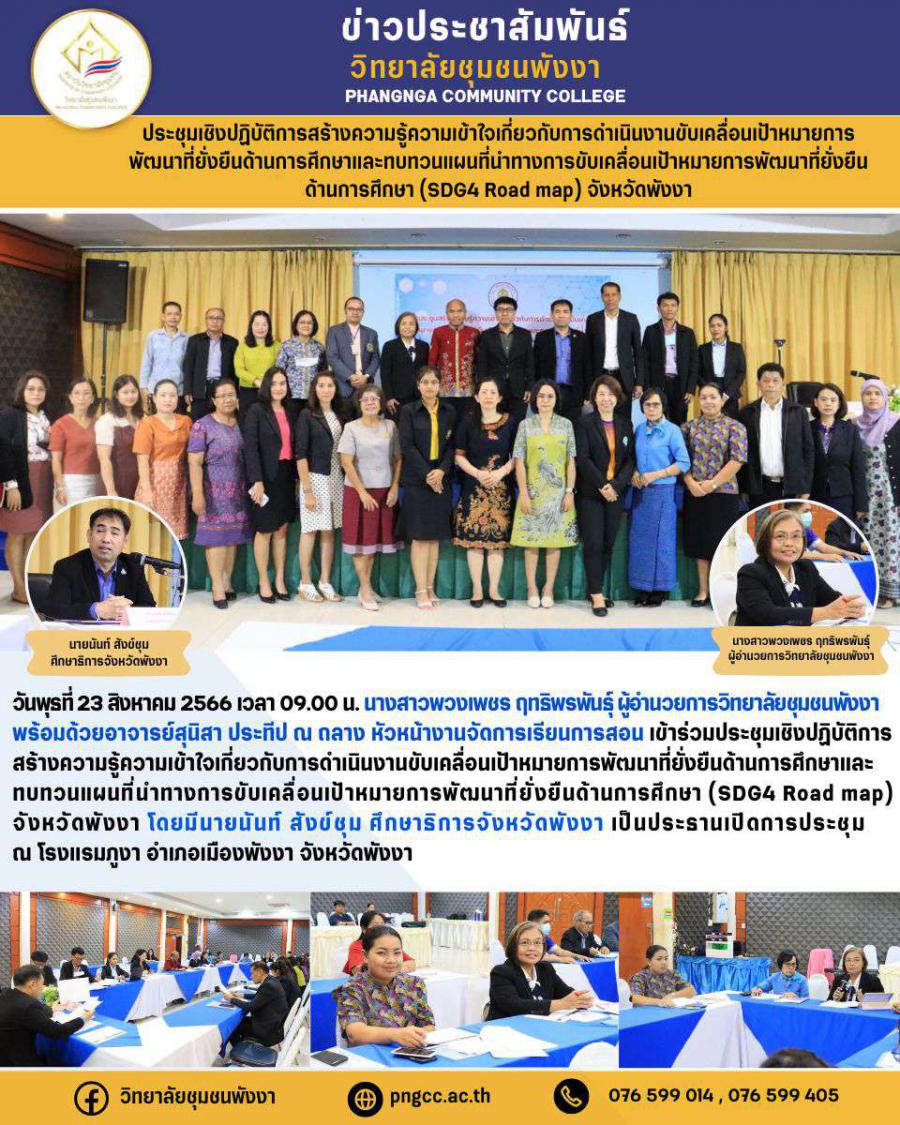 ประชุมเชิงปฏิบัติการสร้างความรู้ความเข้าใจเกี่ยวกับการดำเนินงานขับเคลื่อนเป้าหมายการพัฒนาที่ยั่งยืนด้านการศึกษาและทบทวนแผนที่นำทางการขับเคลื่อนเป้าหมายการพัฒนาที่ยั่งยืน ด้านการศึกษา (SDG4 Road map) จ