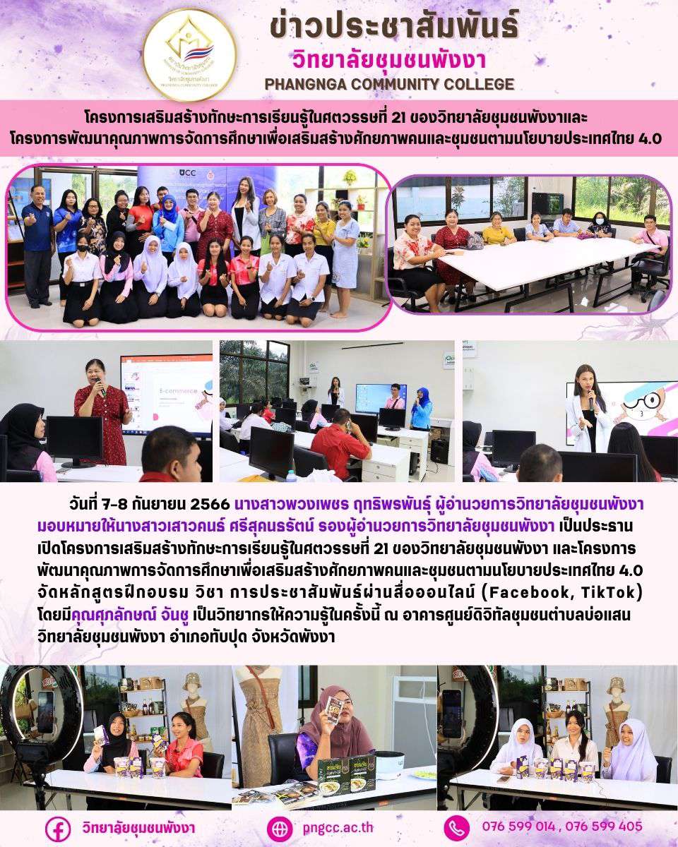 โครงการเสริมสร้างทักษะการเรียนรู้ในศตวรรษที่ 21 ของวิทยาลัยชุมชนพังงาและ โครงการพัฒนาคุณภาพการจัดการศึกษาเพื่อเสริมสร้างศักยภาพคนและชุมชนตามนโยบายประเทศไทย 4.0