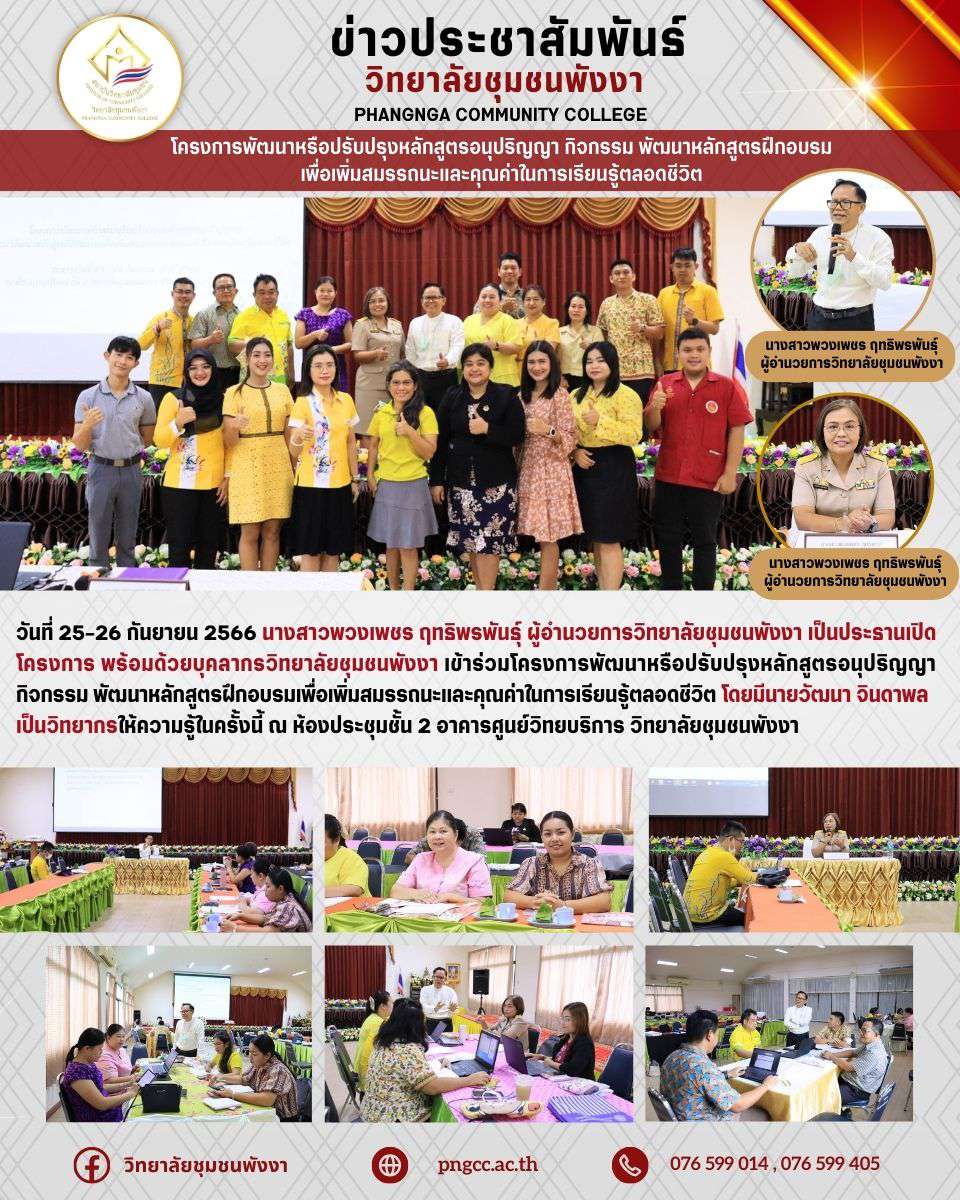 โครงการพัฒนาหรือปรับปรุงหลักสูตรอนุปริญญา กิจกรรม พัฒนาหลักสูตรฝึกอบรม เพื่อเพิ่มสมรรถนะและคุณค่าในการเรียนรู้ตลอดชีวิต