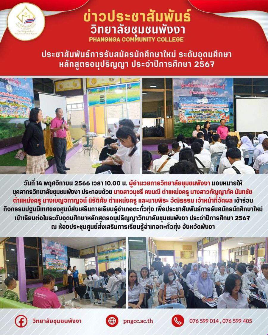 ประชาสัมพันธ์การรับสมัครนักศึกษาใหม่ ระดับอุดมศึกษา หลักสูตรอนุปริญญา ประจำปีการศึกษา 2567