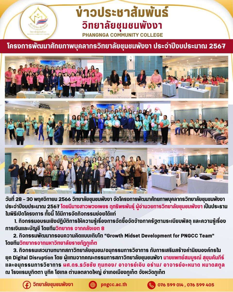 โครงการพัฒนาศักยภาพบุคลากรวิทยาลัยชุมชนพังงา ประจำปีงบประมาณ 2567