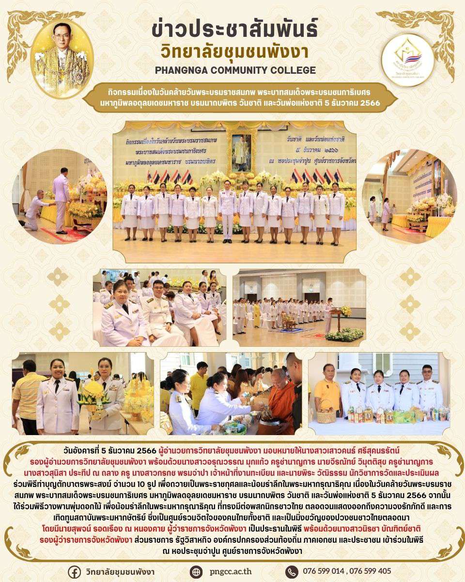 กิจกรรมเนื่องในวันคล้ายวันพระบรมราชสมภพ พระบาทสมเด็จพระบรมชนกาธิเบศร มหาภูมิพลอดุลยเดชมหาราช บรมนาถบพิตร วันชาติ และวันพ่อแห่งชาติ 5 ธันวาคม 2566