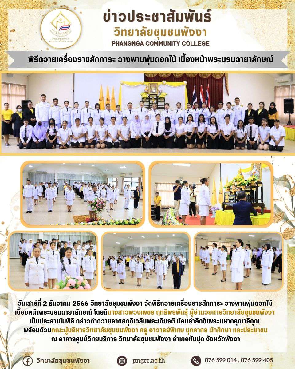 พิธีถวายเครื่องราชสักการะ วางพานพุ่มดอกไม้ เบื้องหน้าพระบรมฉายาลักษณ์