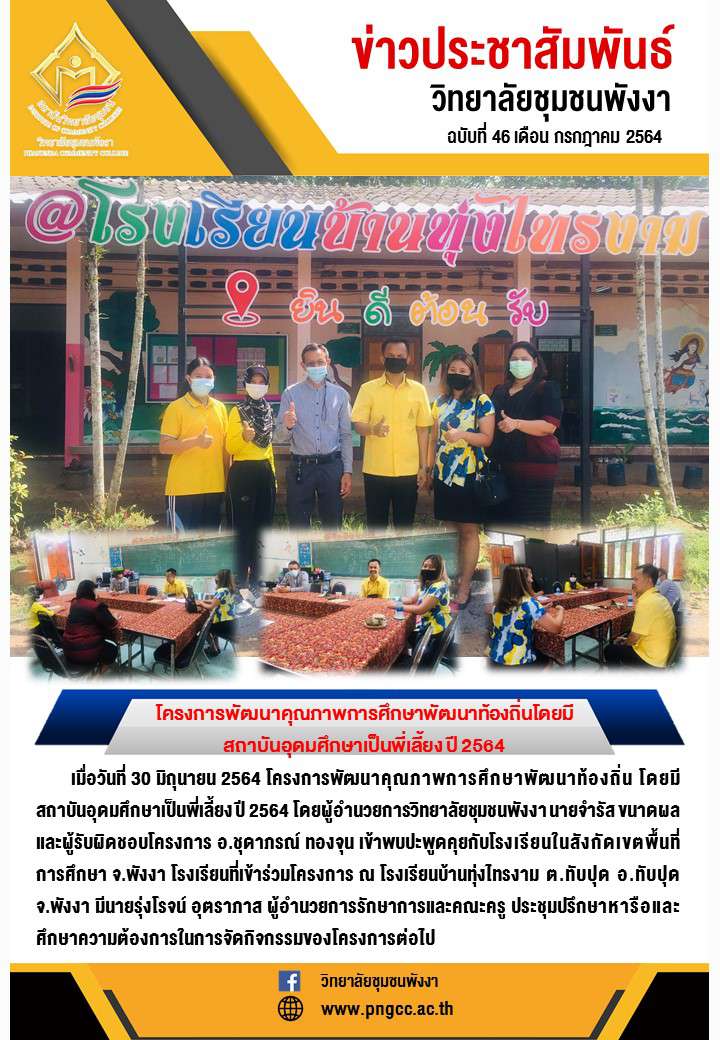 โครงการพัฒนาคุณภาพการศึกษาพัฒนาท้องถิ่นโดยมีสถาบันอุดมศึกษาเป็นพี่เลี้ยง ปี 2564 โรงเรียนบ้านทุ่งไทรงาม