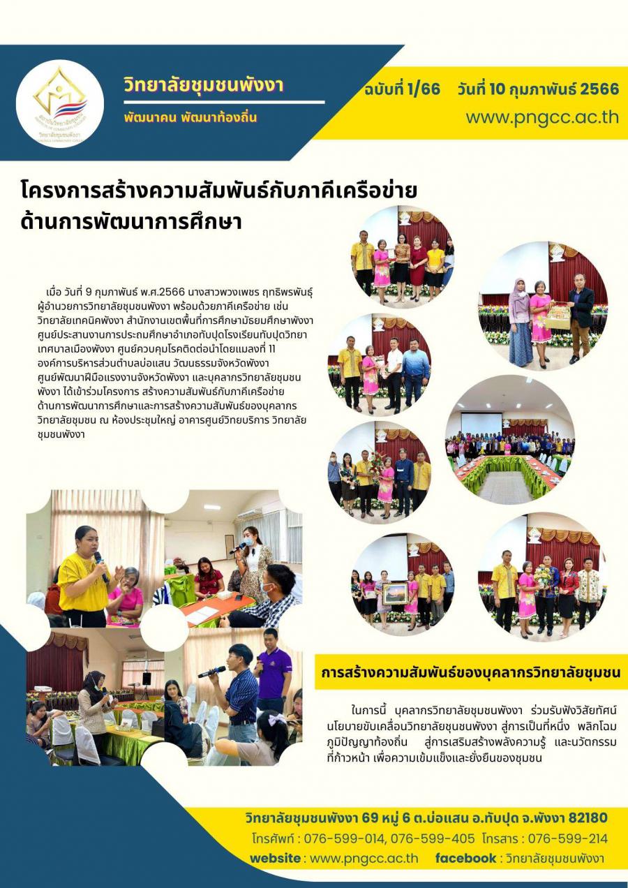 โครงการ สร้างความสัมพันธ์กับภาคีเครือข่ายด้านการพัฒนาการศึกษา และการสร้างความสัมพันธ์ของบุคลากรวิทยาลัยชุมชน