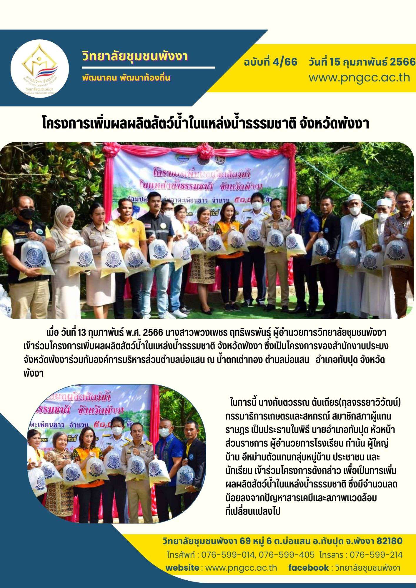 โครงการเพิ่มผลผลิตสัตว์น้ำในแหล่งน้ำธรรมชาติ จังหวัดพังงา