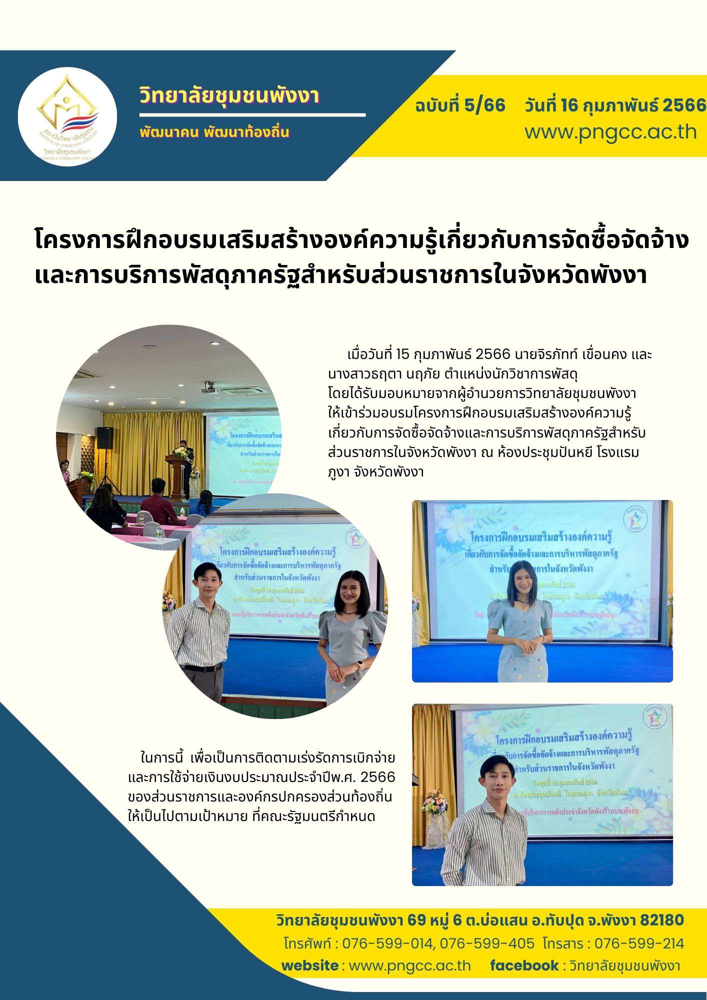 โครงการฝึกอบรมเสริมสร้างองค์ความรู้เกี่ยวกับการจัดซื้อจัดจ้าง และการบริการพัสดุภาครัฐสำหรับส่วนราชการในจังหวัดพังงา